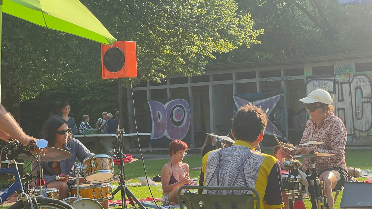 Créé à l’occasion d’un live streaming du Moods Jazz club de Zürich pendant le covid, le duo composé de la super multiactive valdo-genevoise Béatrice Graf – et Prix suisse de Musique 2019 – et du musicien et producteur berno-zürichois Domi Chansorn se produit sous le nom d’Aufzug ! (ascenseur). Fous de la composition instantanée et de groove, les deux batteur·es improvisent avec de vieux synthés moog, des guitares une corde, une batterie d’objets ou des jouets d’enfants.