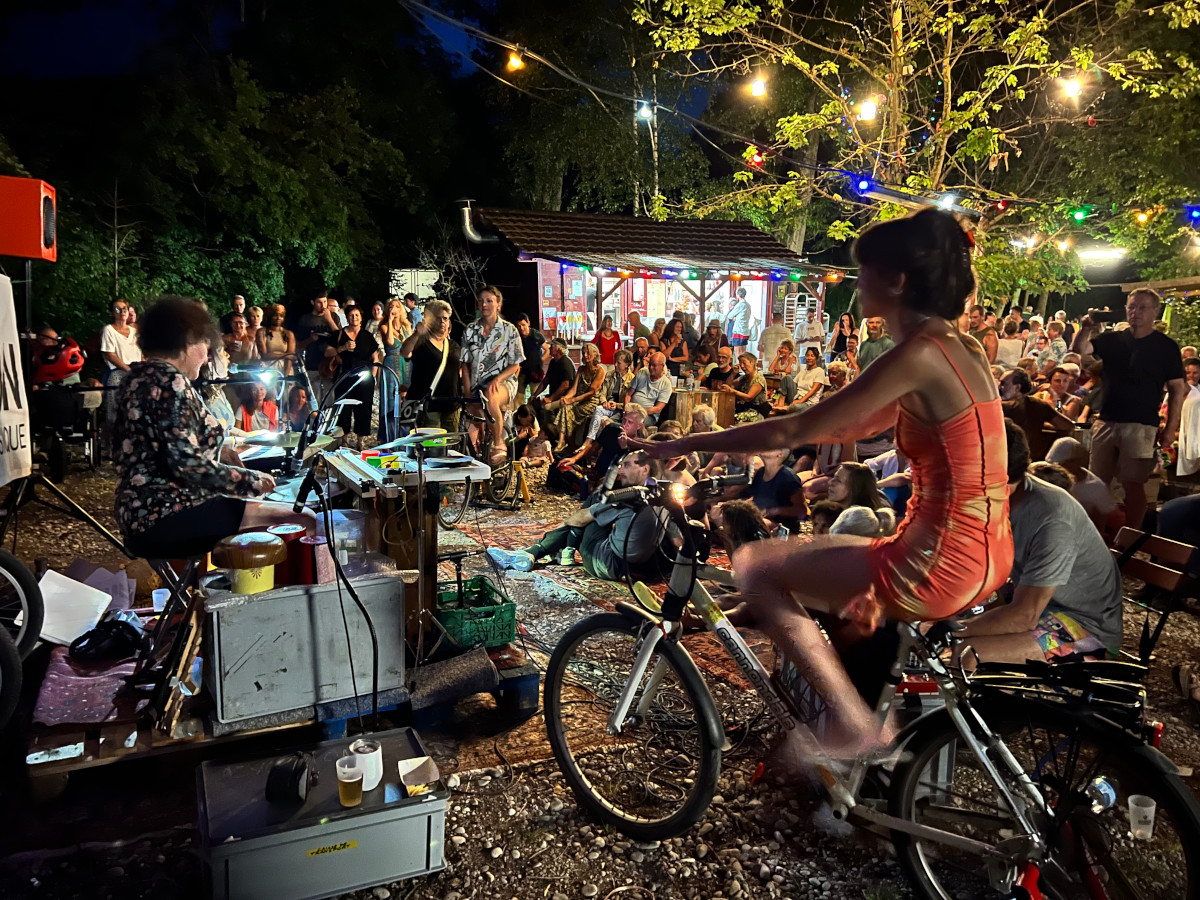 Konzertbesucher*innen treten während den Auftritten in die Pedale und erzeugen mit ihrer Muskelkraft den benötigten Strom, um die Konzerte zu verstärken. Dieses innovative Soundsystem heisst Cyclotone und wurde 2012 von den Freiburgern Musikern Bernhard Zitz und Pierre Berset entwickelt.